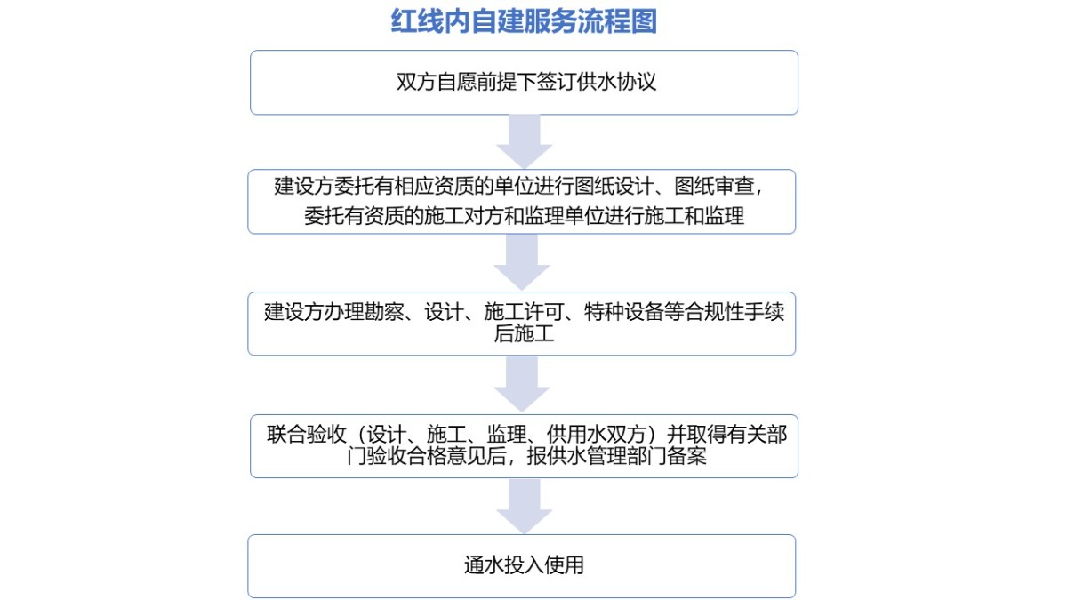 红线内工程原则上由用户自行建设,用户如果委托自来水公司代为建设,自来水公司可以提供“0跑腿”上门服务。
