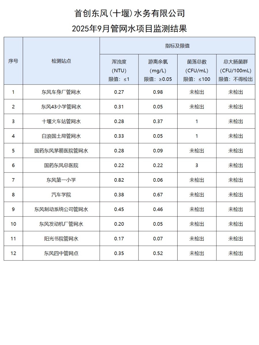2025年9月水质公告(管网水)